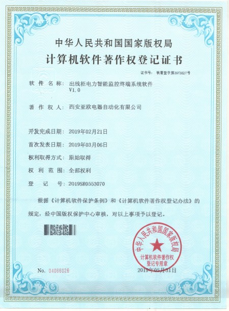- 關(guān)于我們 - 資質(zhì)榮譽(yù) - 出線柜電力智能監(jiān)控終端系統(tǒng)軟件